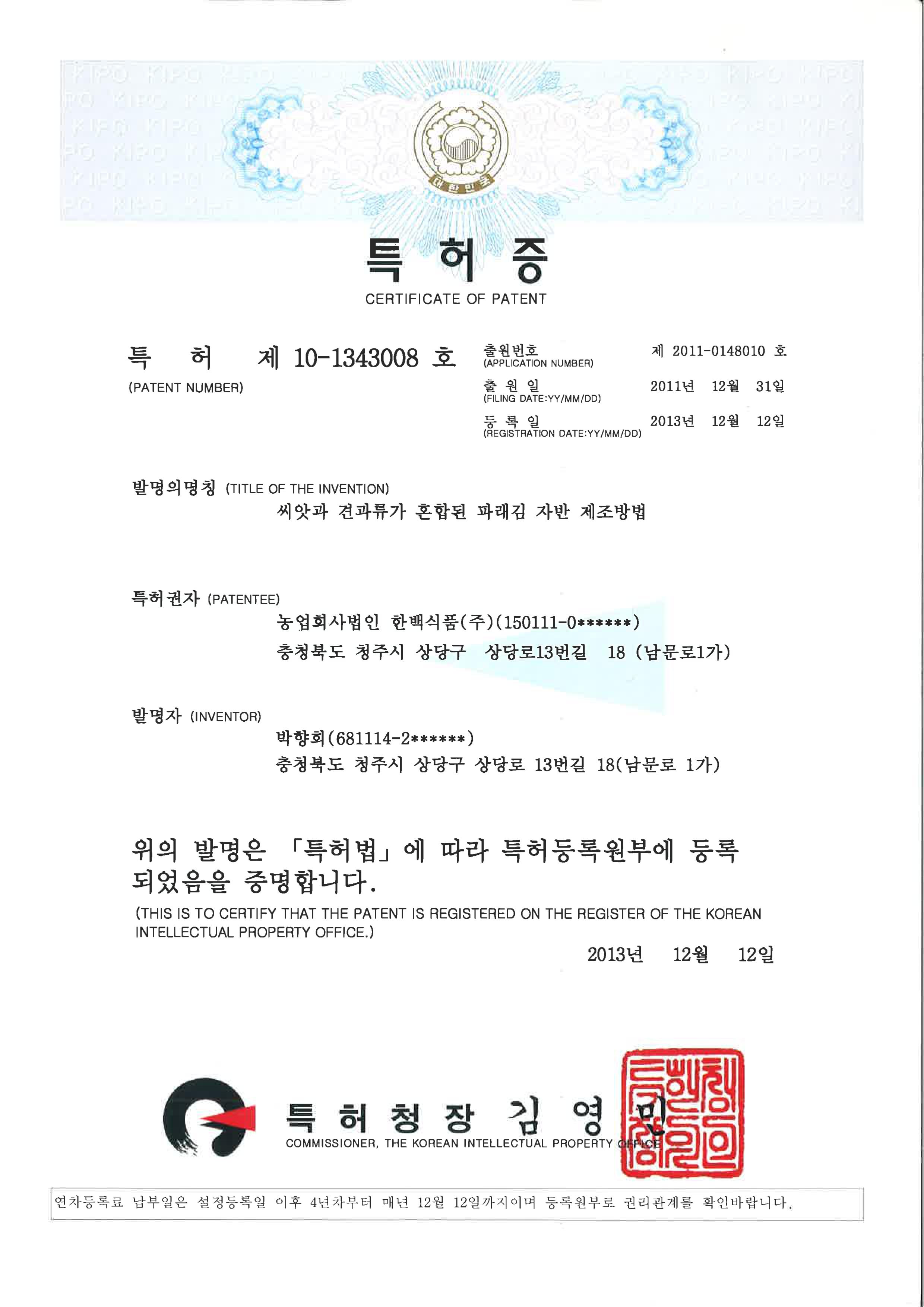 [专利证]紫菜加工方法及由此制造的紫菜包装体